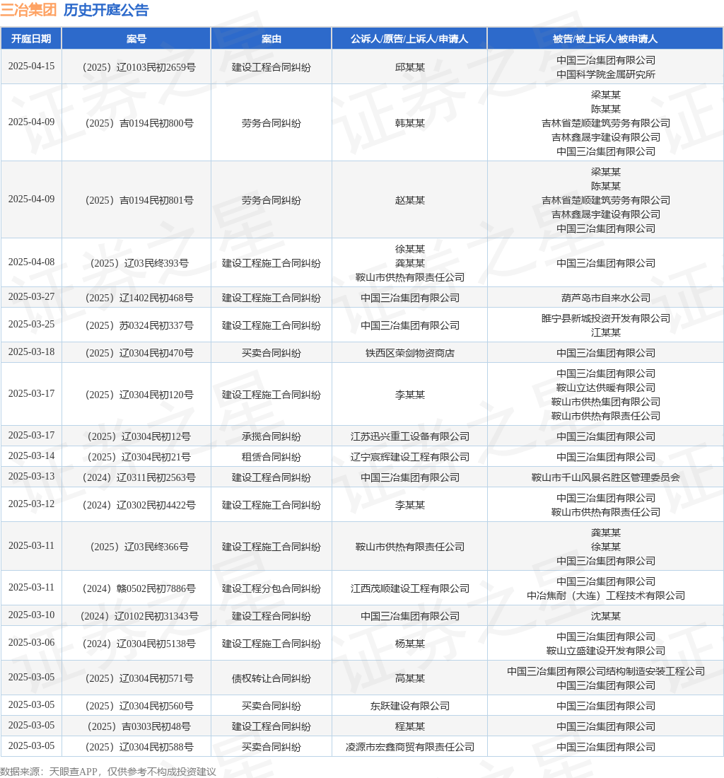 本站消息,根据天眼查APP显示,近日公布了一则中国三冶集团有限公司作为被告/被上诉人的开庭公告,详细内容如下: